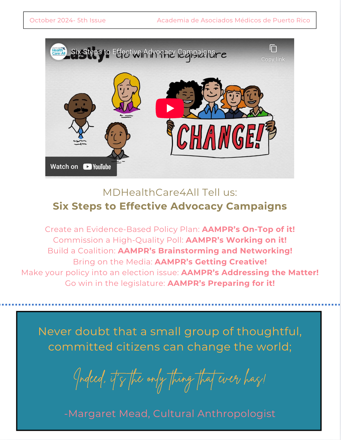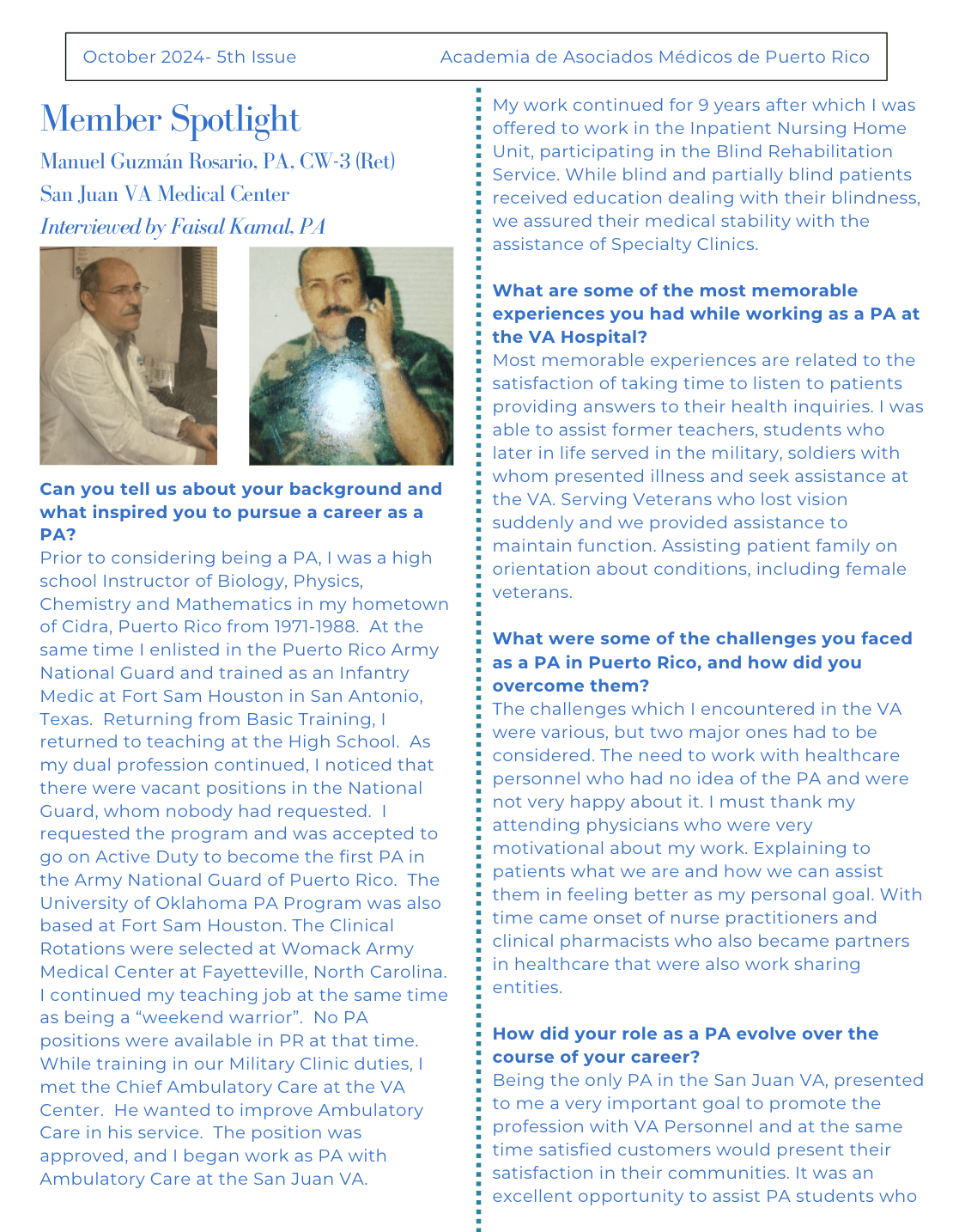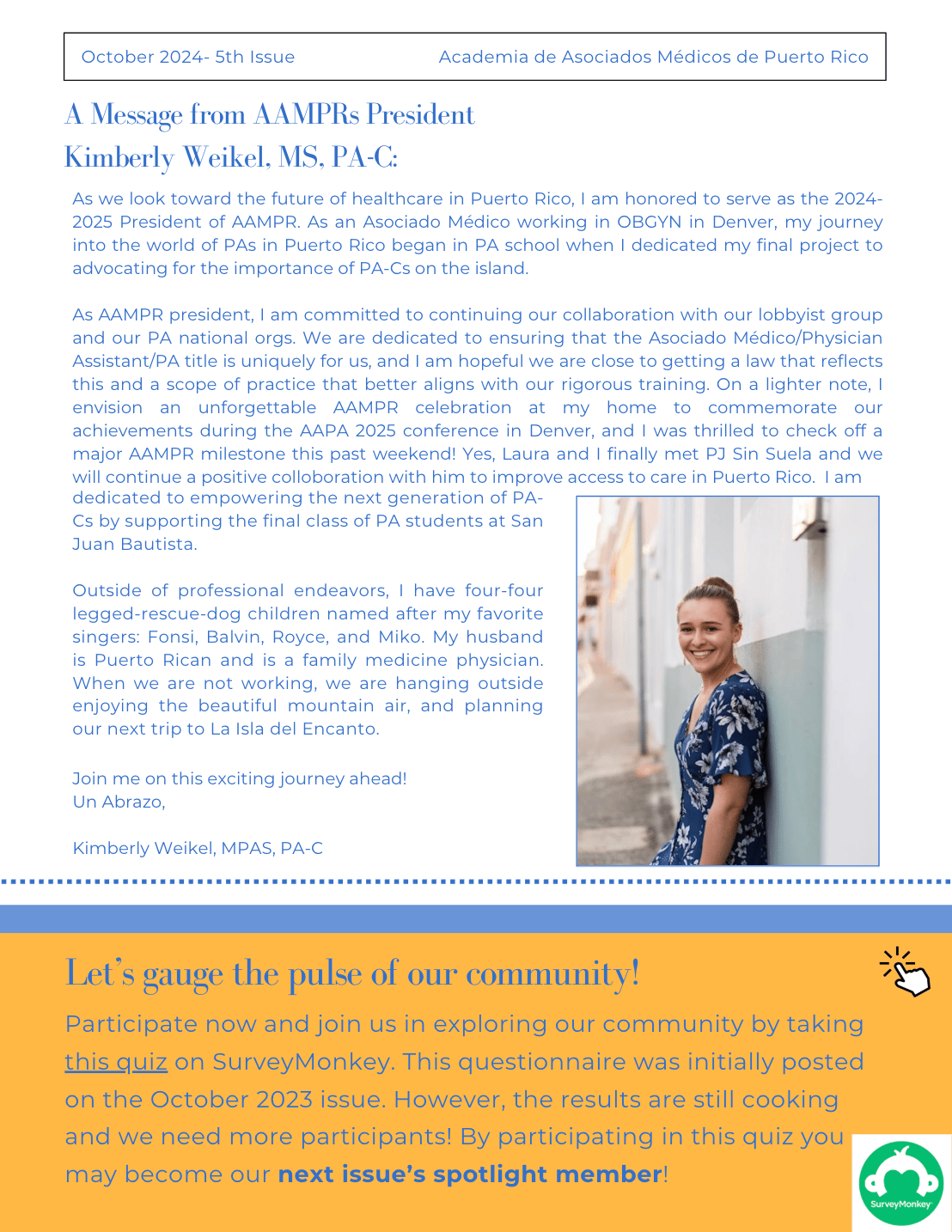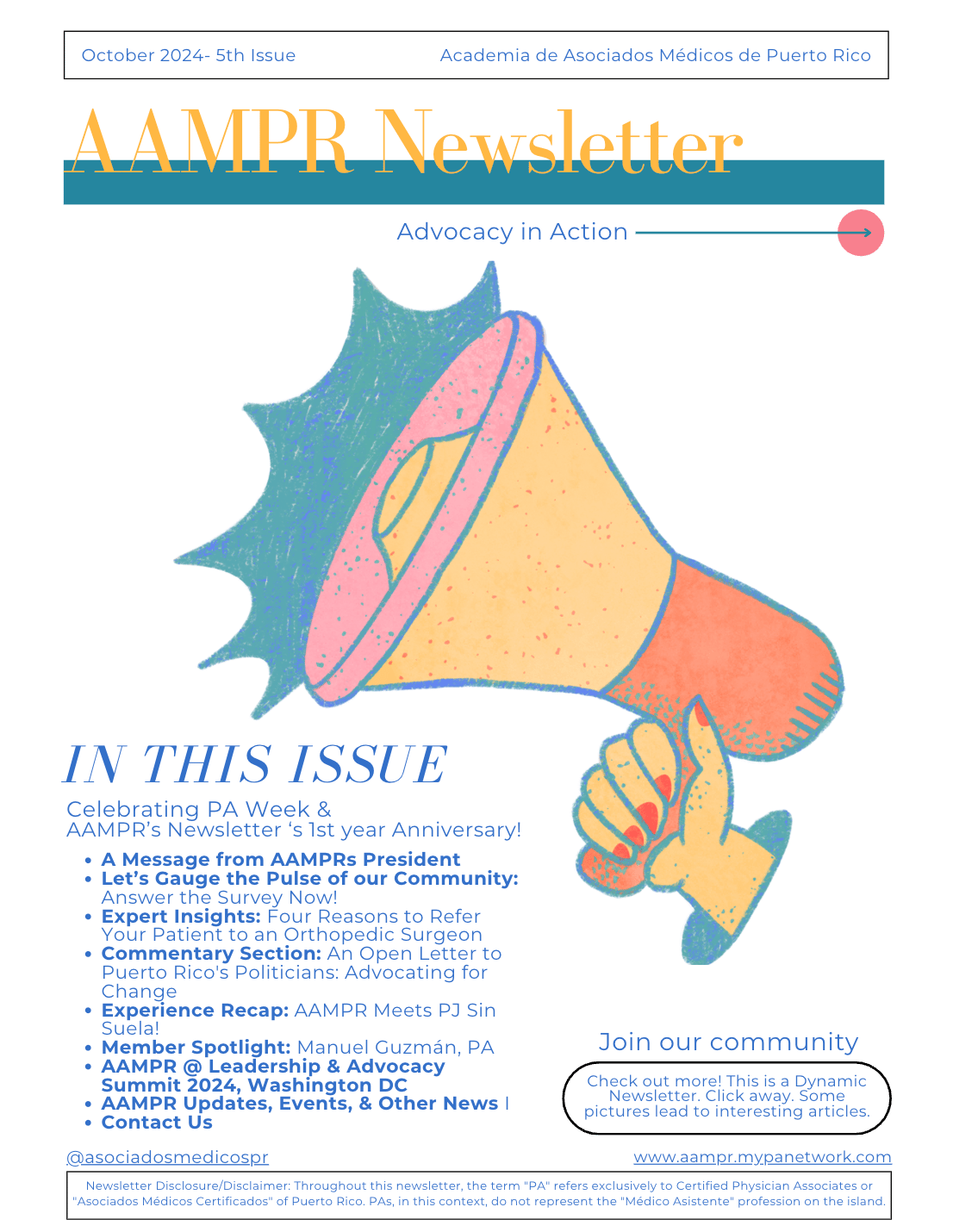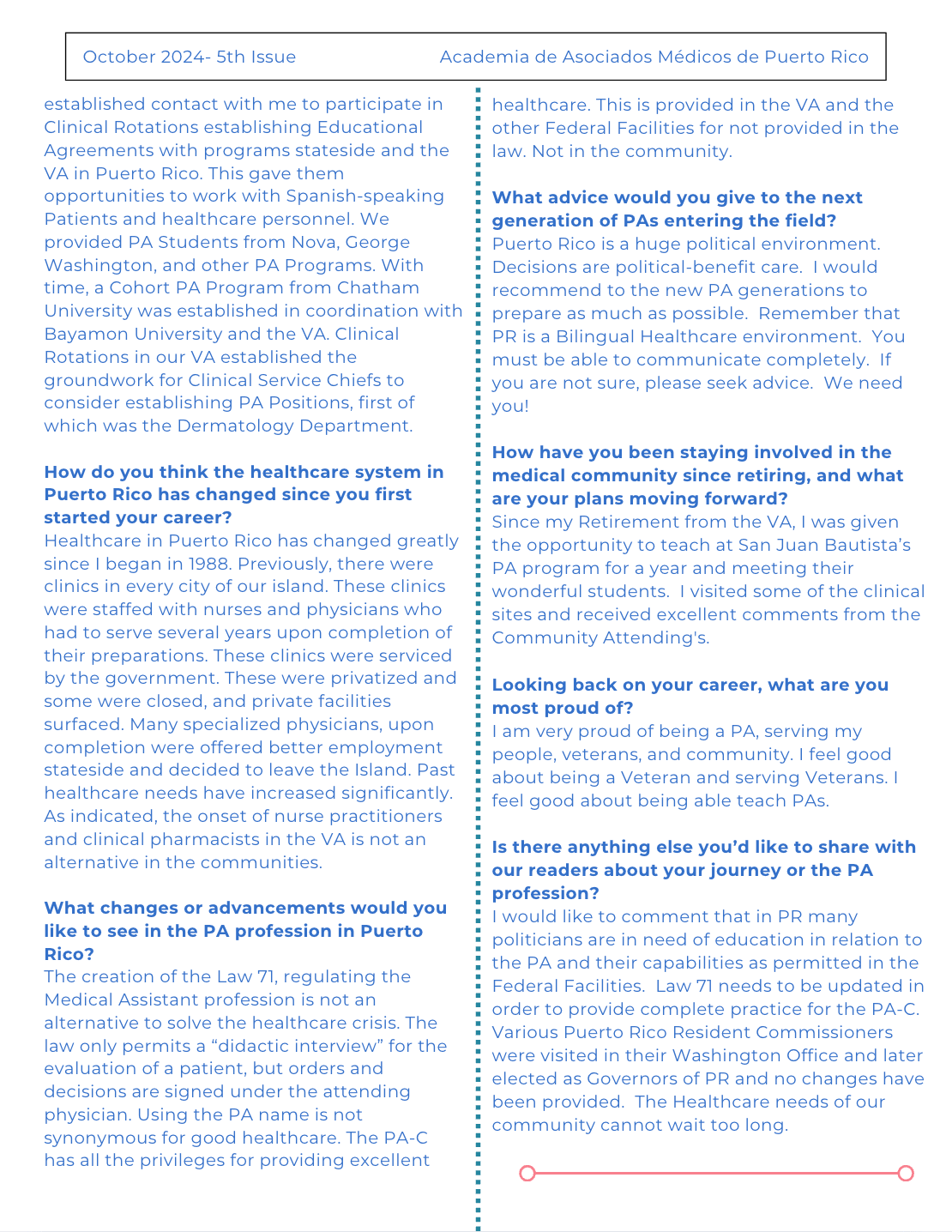 The AAMPR Newsletter is dedicated to advancing awareness, advocacy, and professional dialogue for Physician Associates in Puerto Rico. This issue captures advocacy in action—highlighting the individuals and moments where Puerto Rico’s PA community showed up, was seen, and represented the profession through leadership, presence, and collective voice.
